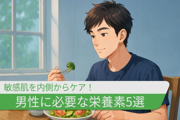 敏感肌 敏感肌を内側からケア!男性に必要な栄養素5選 メタディスクリプション食事で肌トラブル対策!敏感肌の男性におすすめの栄養素5つと、毎日取り入れやすい実践方法を紹介します。 2025.09.19 敏感肌
